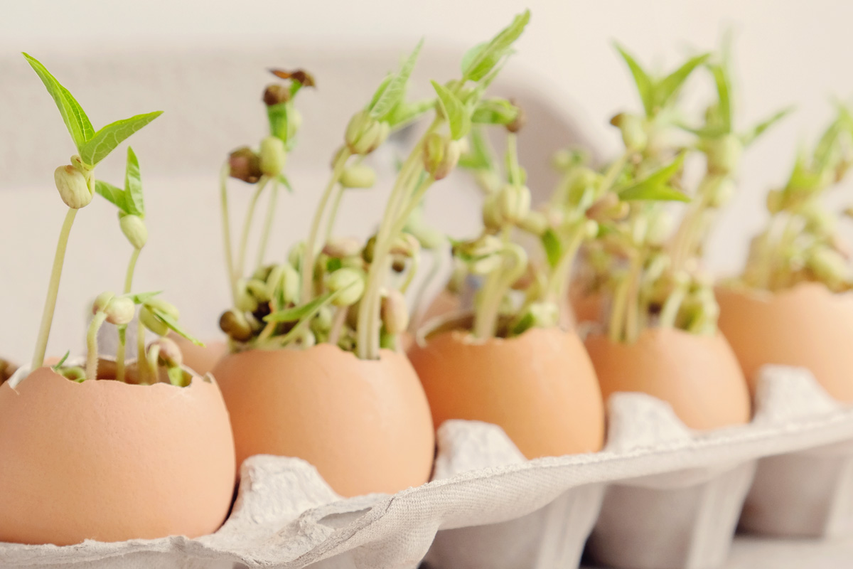 - Use cáscara de huevo para sembrar. Use mitades de cáscara de huevo agrietadas y llénelas hasta la mitad con la mezcla para macetas. Planta semillas dentro de ellas y observa cómo florecen. Para un efecto inmediato de calcio, riegue con el agua en que hirvió los huevos. Recuerde que debe trasplantarlos a un recipiente más profundo, para un buen desarrollo radicular.
